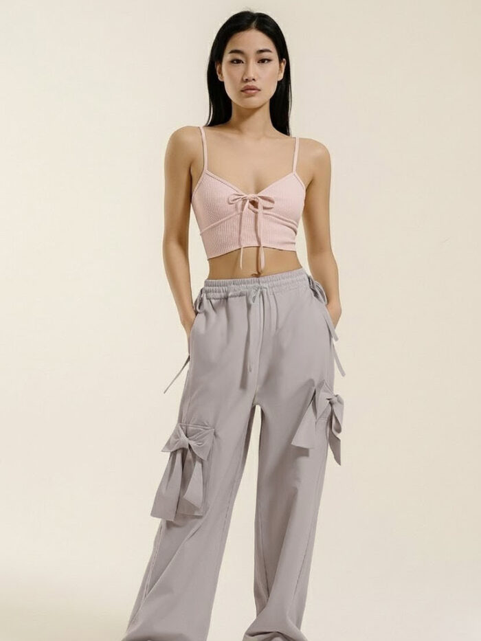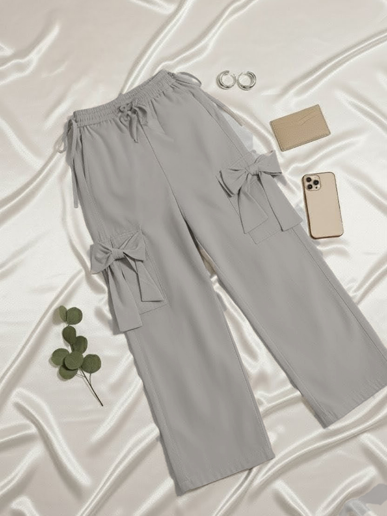 ✅Design Highlight: Unique Self-Fabric Bow-Tie Details on the cargo pockets.