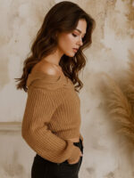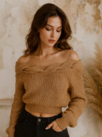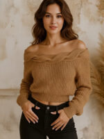 Stay cozy and stylish this winter with our Braided Off-Shoulder Knitted Crop Sweater. Designed in a warm camel brown shade, this sweater features a beautifully braided off-shoulder neckline that adds a feminine and elegant touch. The ribbed knit pattern gives it a snug, flattering fit while keeping you comfortably warm. Perfect for pairing with high-waist jeans, this sweater is ideal for casual outings, winter dates, and everyday chic looks.